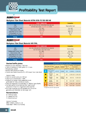 • Optimal thickness of each plate = 6÷12 mm Geometry Grade Vc (mm/rev)
