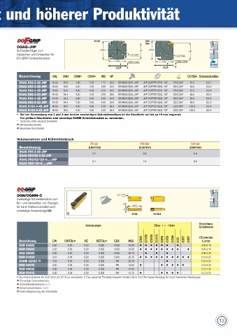 Bezeichnung     OAL   OAH  CWN (1)  CWX (2)  WB  HF                                 CUTDIA Schneideinsätze