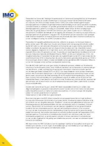 Venezuela. Als gevolg daarvan heeft IMC een beleid om geen zaken te doen met of in Venezuela, of