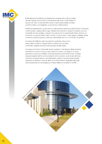 El IMC aplica una prohibición total de prácticas corruptas. Esto incluye cualquier