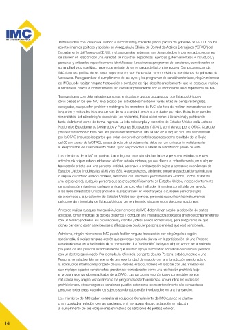 a Venezuela, directa o indirectamente, sin consultar previamente con el responsable de cumplimiento de IMC.