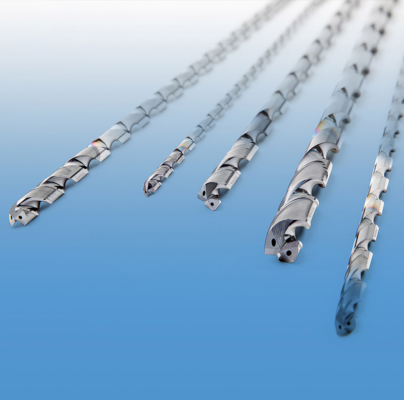El taladrado de agujeros profundos y pequeños en diámetro es una operación común en la fabricación de otros componentes aeroespaciales. Las nuevas brocas de metal duro integral de Iscar en el rango de diámetro de 3 a 10 mm (Fig. 3) están destinadas específicamente a tal operación. La combinación de una geometría de punta autocentrante, un diseño de doble guía en la periferia, canales pulidos, un recubrimiento multicapa y agujeros para la refrigeración interna, proporcionan una notable familia de herramientas para taladros eficaces hasta profundidades de hasta 50 veces el diámetro aceros austeníticos y resistentes, difíciles de cortar y aleaciones base hierro.