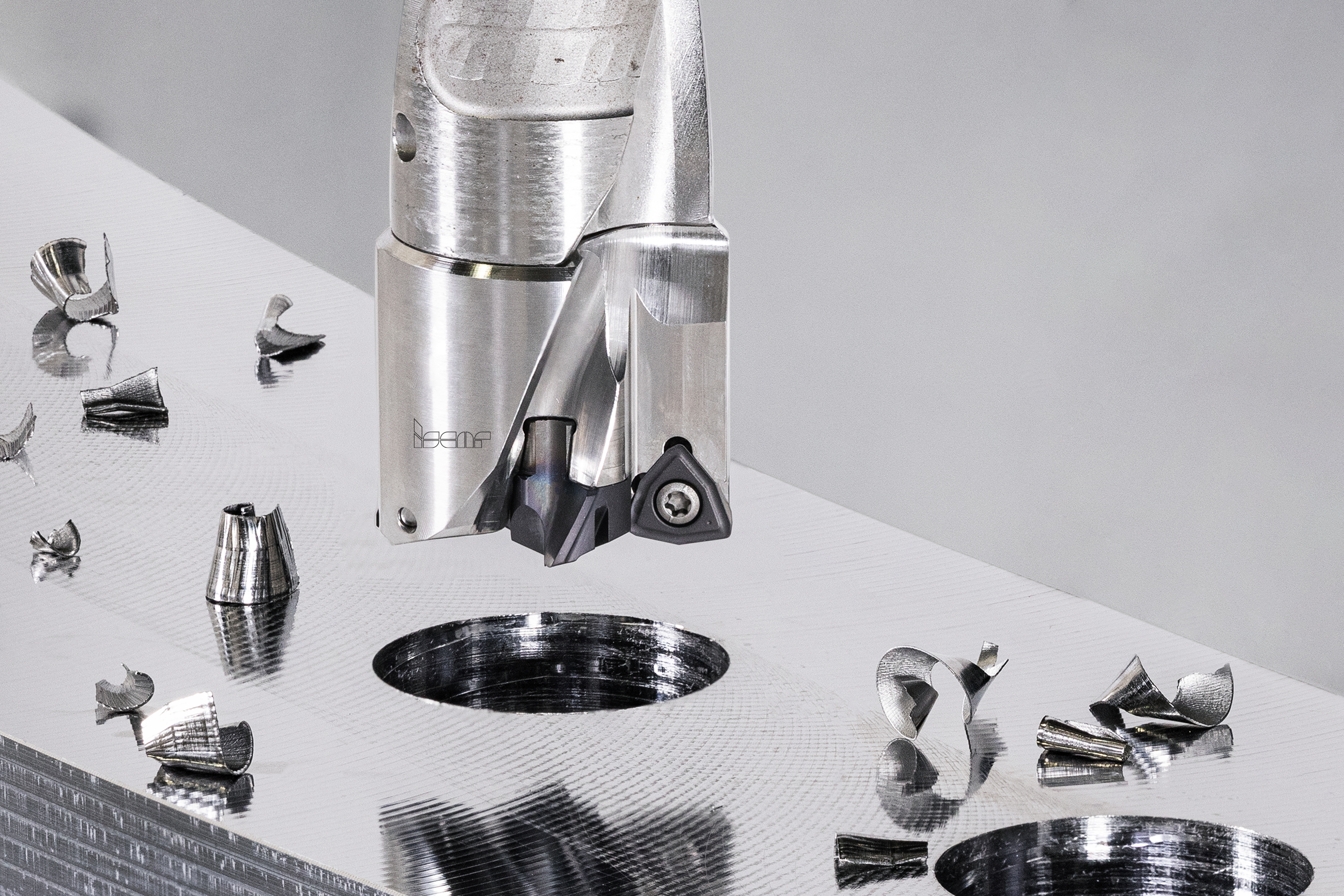 The SUMOCHAM line is intended for high-speed drilling and is well regarded for its productivity, reliability, usability, and versatility. It addresses a common challenge in drilling operations: the time-consuming process of changing the entire drill. With SUMOCHAM, only the drilling head needs to be replaced, which can be done quickly, without regrinding, and without any additional setup procedure. This NO-SETUP-TIME design concept allows for the replacement of the head without withdrawing the drill from the machine spindle, significantly reducing machine downtime.