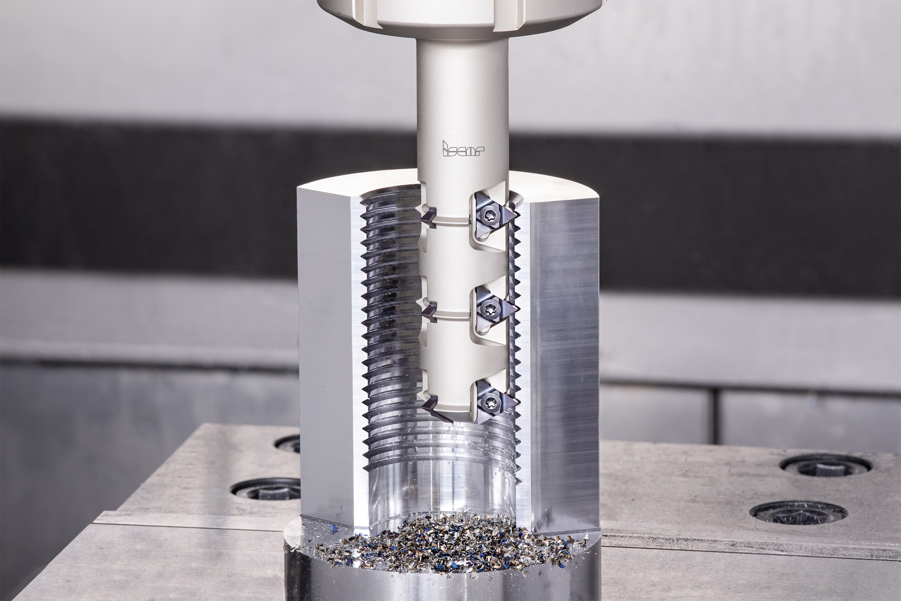 ISCAR has expanded its family of solid carbide thread endmills by introducing new tools with an increased number of flutes (up to 8), significantly reducing machining time. A few words are worth mentioning about the new QUICK-M-THREAD family of milling cutters with triangular inserts (Fig. 1) in the range of indexable threading products. These incorporate a step-release design concept that substantially reduces cutting forces, minimizes bending load, and improves dynamic stability, thereby enhancing productivity. The new tools, both solid and indexable, are also equipped with an internal coolant supply option, which not only increases the cooling effect and lubricity during thread milling but also contributes to better chip flow and surface finish.
