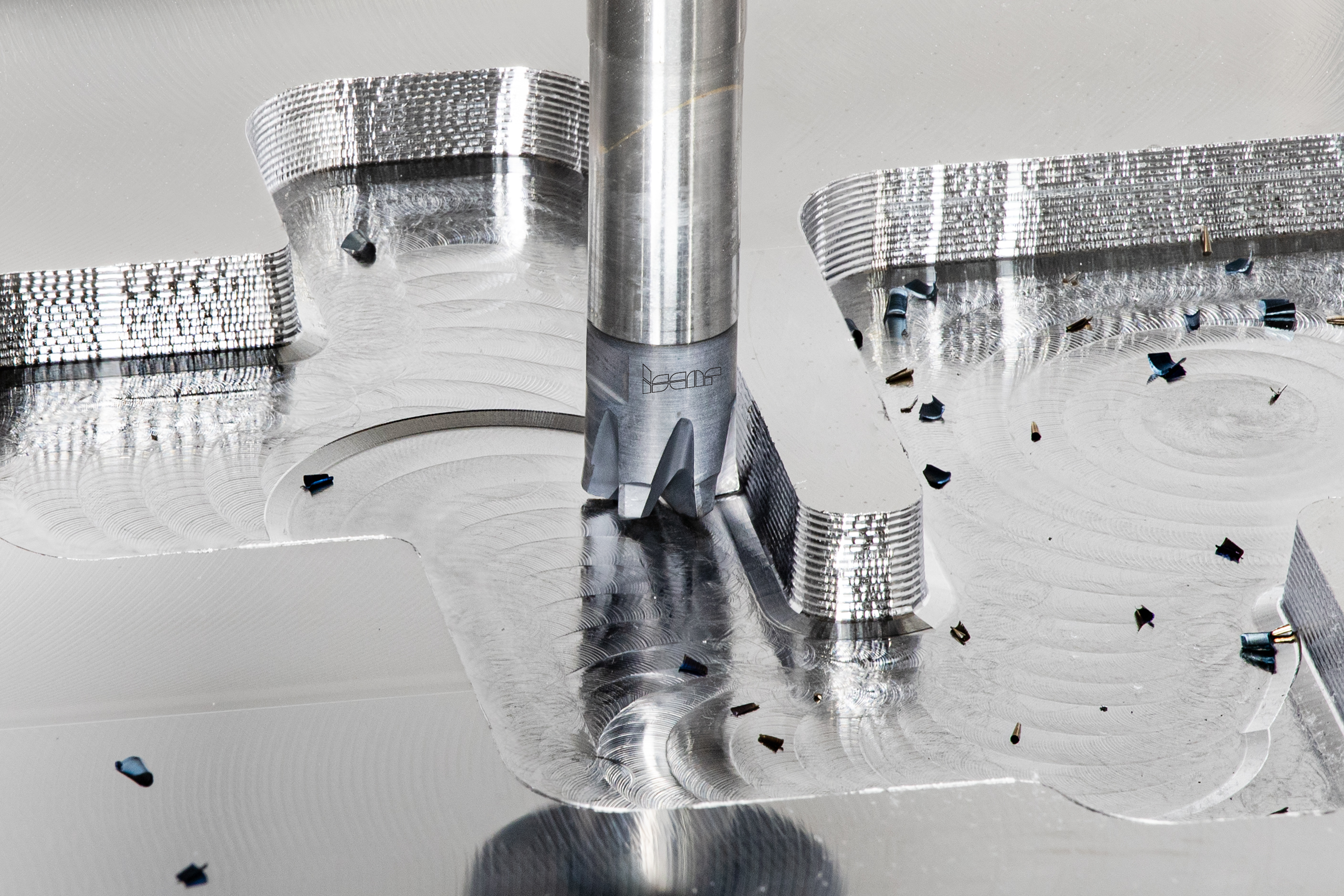 The MULTI-MASTER family of tools with exchangeable cutting heads has been a flagship product of ISCAR for almost a quarter of a century. Despite its "considerable enough" age, innovation never stops within this versatile product line. The launch of the LOGIQUICK campaign has introduced new developments, further expanding the application range of the popular family. One of the new products is a series of six-flute solid carbide heads, intended for quick metal removal in roughing using the high feed milling (HFM) method (Fig. 2). These heads have ramping and slotting capabilities and are suitable for machining hard steel and cast iron (up to HRC 65). They are available in diameters ranging from 8 to 25 mm. Another addition is represented by new three-flute heads specifically designed for shallow drilling operations (with a depth of up to one head diameter). The heads seamlessly combine the highly efficient cutting geometry of LOGIQ-3-CHAM, another popular product of the company, with the exceptional robustness of the MULTI-MASTER concept. This combination results in a highly productive drilling tool, especially when used with materials that produce short chips. A new double-sided design featuring two pockets in one shank offers cost-effectiveness and sustainable utilization of the shank material. The shank, which is made of steel, includes a central trough hole for internal coolant supply.